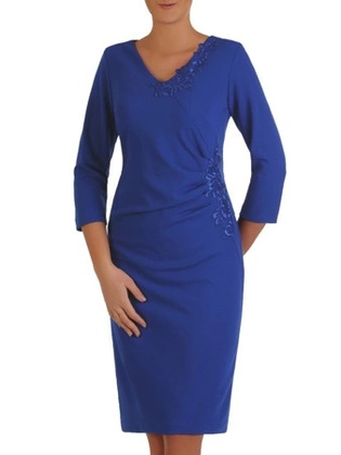 Chabrowa sukienka z ozdobnymi aplikacjami z koronki 28088