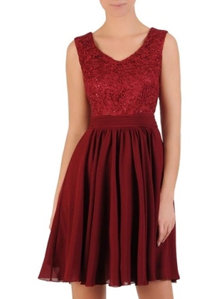 Sukienka z ozdobnym karczkiem, elegancka kreacja z tkaniny i koronki 20003.