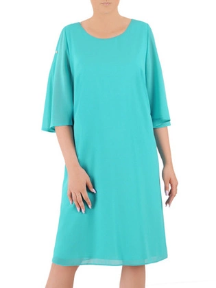 Trapezowa sukienka z szyfonu, kreacja z perełkami na rękawach 36444