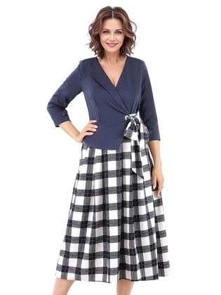 Sukienka kopertowa, modna kreacja w kratkę 36580