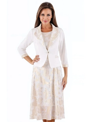 Elegancki kostium na wesele, prosta sukienka z koronkowym żakietem 26469