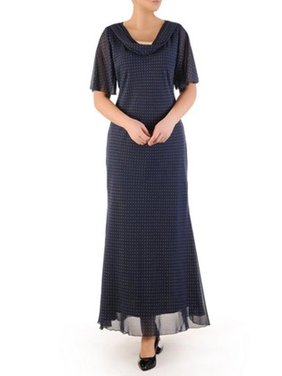 Sukienka koktajlowa maksi, granatowa kreacja z koronkową górą 30726