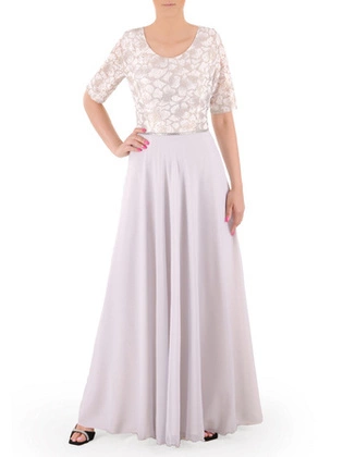 Wieczorowa sukienka z asymetrycznym, koronkowym topem 23878