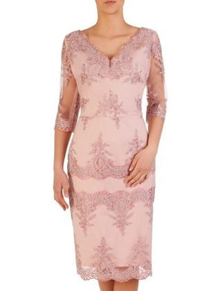 Sukienka wyjściowa, kopertowa kreacja z ozdobnymi rękawami 29263