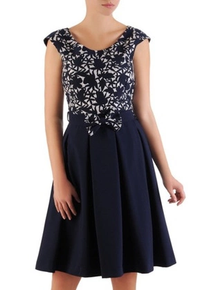 Rozkloszowana sukienka z kokardą, kreacja w kontrastowe kwiaty 22519