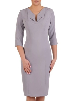 Sukienka z podwójną baskinką, elegancka kreacja wizytowa 16889
