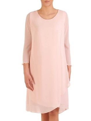 Sukienka z szyfonu, pudrowa kreacja w luźnym fasonie 29747