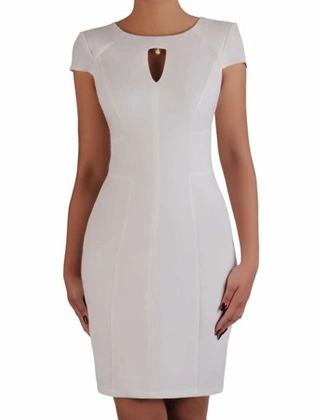 Sukienka damska Telinda XVIII, wyszczuplająca kreacja z modnym kołnierzykiem.
