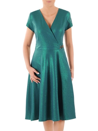Wyszczuplająca sukienka z imitacją żakietu, kreacja z ozdobną baskinką 36570