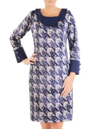 Prosta sukienka z dzianiny, kreacja z ozdobnym kołnierzem 33902
