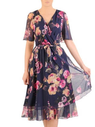 Elegancka sukienka w kwiaty z kopertowym dekoltem 33631