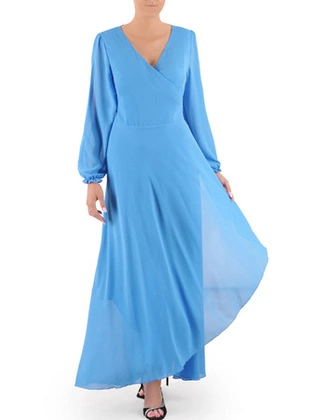 Elegancka sukienka maxi, kreacja z ozdobnymi rozcięciami na rękawach 34526