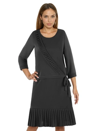 Czarna sukienka z ozdobnie wyszczuplającym wiązaniem 36605