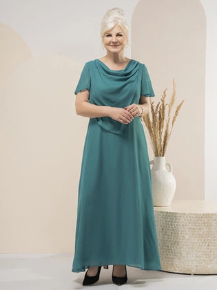 Turkusowa sukienka z modnym dekoltem, nowoczesna kreacja wizytowa 35130