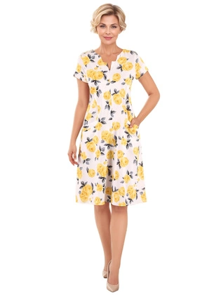 Wiosenna sukienka w kwiaty, kreacja z zamkiem na dekolcie 33302