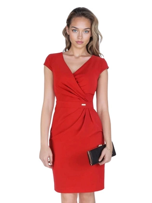 Sukienka damska, czerwona kreacja wizytowa z ozdobnie rozciętymi rękawami 38070