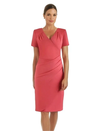Sukienka damska 18943, czerwona kreacja w fasonie maskującym brzuch.