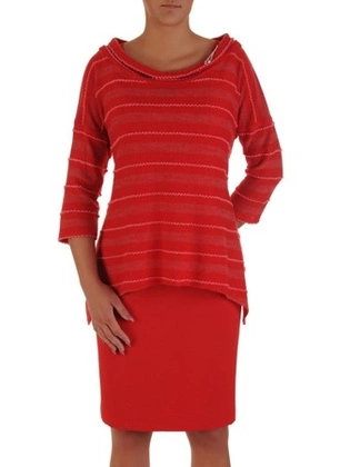 Sukienka 2w1 17633, czerwona princeska z dzianinową narzutką.