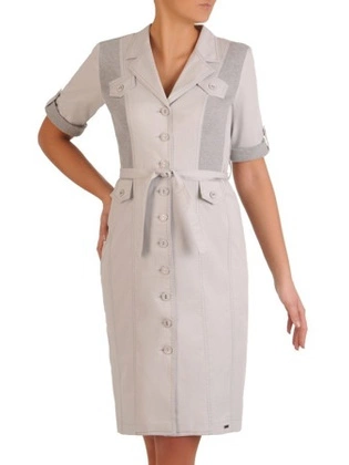 Szara sukienka wiązana w pasie, modna kreacja z bawełny 37822