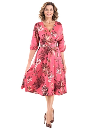 Sukienka damska w kwiaty – elegancka sukienka na wesele, rozkloszowana midi 40210