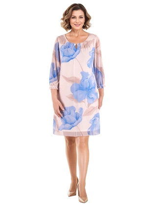 Sukienka damska midi w kwiaty – zwiewna sukienka na wesele, lekka szyfonowa kreacja z rękawem 3/4 39965