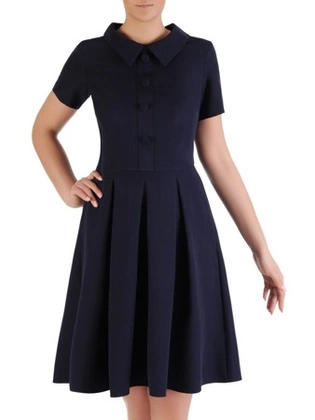 Rozkloszowana sukienka z modnym kołnierzykiem 18116, morska kreacja wizytowa.