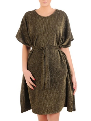 Trapezowa sukienka damska z brokatowym zdobieniem 32384