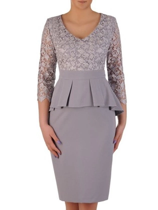 Sukienka z baskinką, popielata kreacja z koronki i tkaniny 19956.