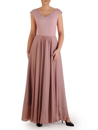 Mocno rozkloszowana sukienka wieczorowa z szyfonu, elegancka kreacja maxi 19302