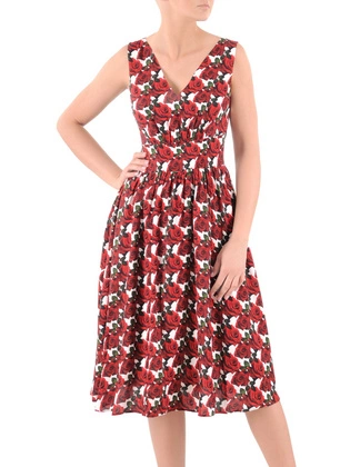 Elegancka sukienka w kwiatowy wzór, kobieca kreacja bez rękawów 38506