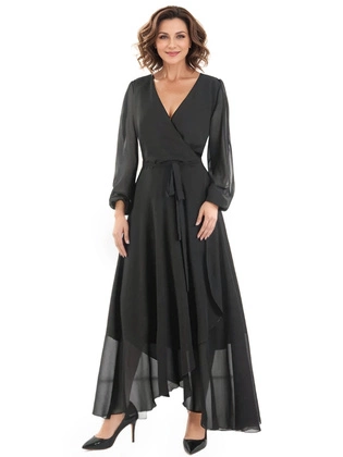 Sukienka damska na lato, elegancka, długa kreacja w kopertowym fasonie 33094