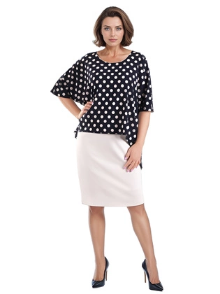 Komplet damski plus size, elegancka, biała sukienka z luźną narzutką, tuniką w groszki 16657