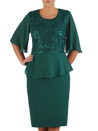 Wyszczuplająca sukienka z baskinką i koronkowym topem 22686