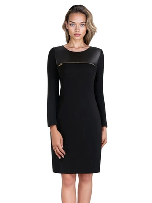 Prosta sukienka z dzianiny z eleganckimi, połyskującymi wstawkami 31406