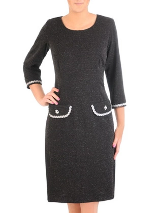Nowoczesna sukienka z imitacją żakietu, modna kreacja z dzianiny 27009
