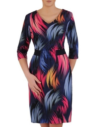 Wzorzysta sukienka z ozdobną gumą w pasie 25195