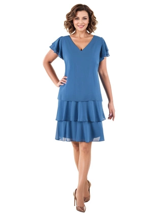 Morska sukienka wizytowa z falbanami – elegancka sukienka midi z szyfonu na wesele 40216