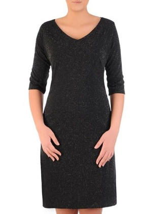 Luźna sukienka z kieszeniami, kreacja z połyskującej dzianiny 22658