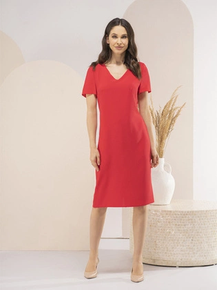 Sukienka w wyszczuplającym fasonie, modna kreacja z kołnierzem 27187