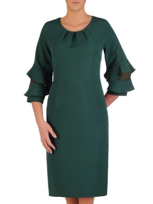 Szmaragdowa sukienka, elegancka kreacja z modnymi rękawami 20047.