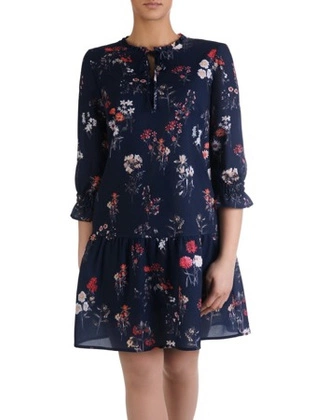Elegancka sukienka w dziewczęcym fasonie 15672, kreacja w ozdobne kwiatki.