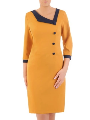 Nowoczesna sukienka z kontrastowym, asymetrycznym kołnierzem 33298