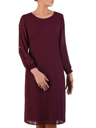 Trapezowa sukienka z szyfonu, kreacja z perełkami na rękawach 25807