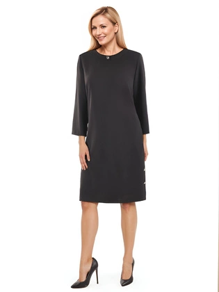 Elegancka sukienka midi bordowa ze złotymi akcentami – elegancka kreacja z rękawem 3/4 40392