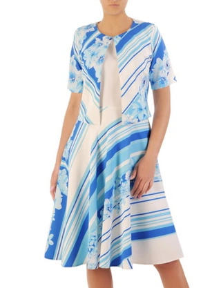 Sukienka damska z wzorzystą spódnicą, kreacja o długości midi 33025