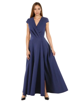 Sukienka na wesele, rozkloszowana kreacja z kopertowym dekoltem 38088