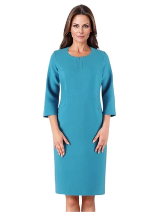 Turkusowa sukienka z modnym dekoltem, nowoczesna kreacja wizytowa 35130