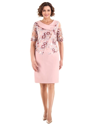 Sukienka wyjściowa, elegancka kreacja w pudrowym kolorze 26418