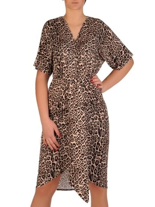Luźna sukienka w elegancką panterkę, kreacja z kimonowymi rękawami 18986