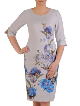 Szara sukienka z wyszczuplającym, kwiatowym nadrukiem 20373